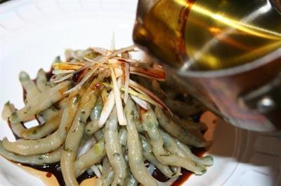 儿时在外疯的我们直到玩得困倦、饥肠辘辘时才回家,善解人意,最知我心的 母亲时常给我们搓面鱼吃,我们当然开心不已了。只见妈妈在面粉中加入一点盐揉成面团,盖上保鲜膜醒一会儿,然后把面团揉成长条状,切成几个小块,用食指和中指夹着一块面团,揪下一小块面两只手把它搓成面鱼的形状。撒一些面粉防粘,面鱼搓出来就直接扔在上面。在我们惊喜的眼眸中,母亲手中的面像变戏法似的变成了一个个匀称的面鱼,在母亲的手底下滚动着,饱满而好看,好似被母亲的巧手赋予了生命。母亲娴熟而连贯的搓着面鱼。最后锅里烧开水,把面鱼放下去煮熟,比面条时间要长一些,快熟的时候放一小把青菜进去,面鱼和青菜一起捞出来配上各种配菜就可以享用了。