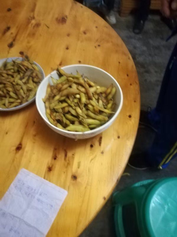 我的家在重庆市江津区的一个山区,是一个地地道道的农村孩子,不像城里人那样干净利落。今年在这秋收的季节里,我家种的豆子,正是丰收的时候,看见田里金黄金黄的豆子,一窜窜的挂在豆杆上,是那么的诱人。今天我和妈妈一起去地里看豆子,看见金黄的豆子,妈妈提议我们摘一些“毛豆角”回家,可能许多小朋友都不知道,这“毛豆角”是什么?那我就当一回小小解说员:“毛豆角”就是在豆子成熟以后,把豆角直接摘下来,放在锅里煮,放点我们这里的土特产花椒,还有香料加上盐和水,煮熟就行了。看见手里这金黄而又饱满的毛豆角,在想想一会回家煮出来的味道,直流口水……!我和妈妈分工合作,妈妈负责割豆杆,我负责摘豆角,没过一会功夫就摘了一筐。我满心期待的拿着豆角,回家去了……。