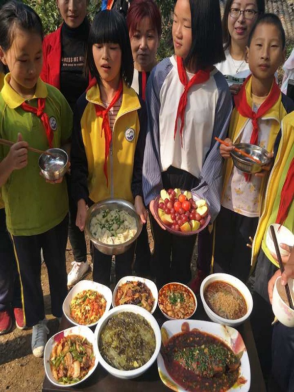 一个小时后我们到达了目的地,各自找到了组队,放下东西就开始干活儿。首先,我们搬来一块块石头,拾来一根根木材,开始搭灶生火。我们搭了两个灶台,一个煮主食,一个做菜。接着我们就开始分工合作,各食其力了。有的烧火,有的包抄手,有的烧菜,个个儿忙得不亦乐乎。我们包的抄手有的像船,有的像飞机,有的像鸟儿,逗得大家哈哈大笑。