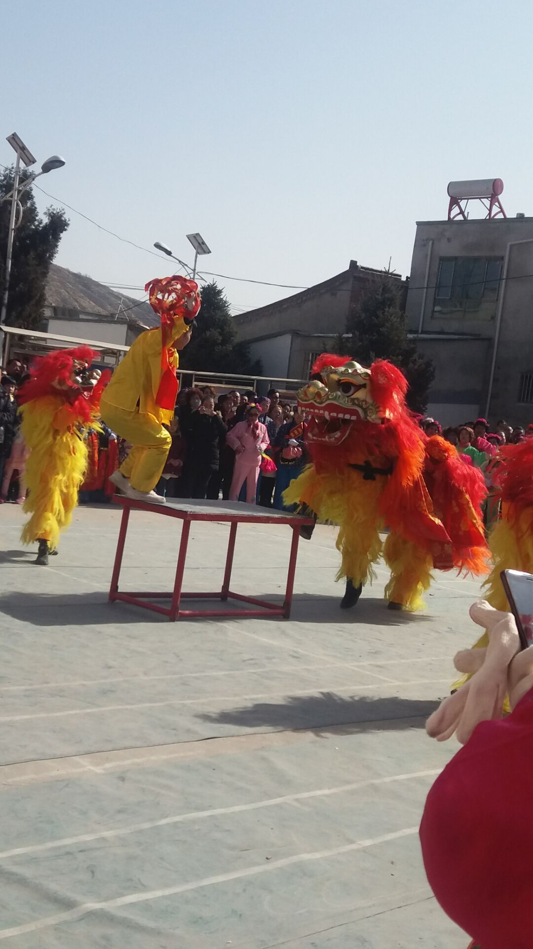 这是一条长长的队伍,打头的是代表这支队伍身份的大牌子——“XX社火大队”。举牌的人将它高举,心中满是骄傲。紧跟在后的便是掌控整支队伍总节奏的锣鼓队,锣鼓队的成员个个都精神抖擞,拿出自己百分百的热情来敲锣打鼓,那鼓槌此时此刻就像那雷公电母的法器般,每挥舞一下,都会响起巨大的声音,引起周围人心中的共振。这声音虽大,但却一点也不使人烦躁,反而使得每个人都内心澎湃而激动。在锣鼓队的后面,扭秧歌的队伍也不甘落后。踩着节奏点,整个小方阵的动作都整齐划一,给人一种奇妙的感觉,看着仿佛接受过标准训练一般,但其实这些队员,都只是因为自己热爱而加入队伍,哪里接受过专业化的修炼呢?他们还会与周围的人互动,使每个人的心里都乐呵呵的,完全跟着他们的节奏,沉浸在这次大型“巡演”中。在这之后,我们的“技术人员”便陆续出场。只见几人踩着高跷,在人群中仿佛碰天的巨人般;几人“高挂”在车上的模型上,扮演者不同的角色。这其中最精彩的就是舞狮,几只金黄的大狮子随着节奏,跟着绣球,上蹿下跳,使人忍不住的拍手叫好。今年的队伍与往年来比还加入了现代化的色彩,队伍的最后,一个方阵的人都穿着现代化的衣服,与这锣鼓搭配起来竟没有一点违和感。她们随着节奏大声吆喝着,仿佛在为整个队伍加油打气……