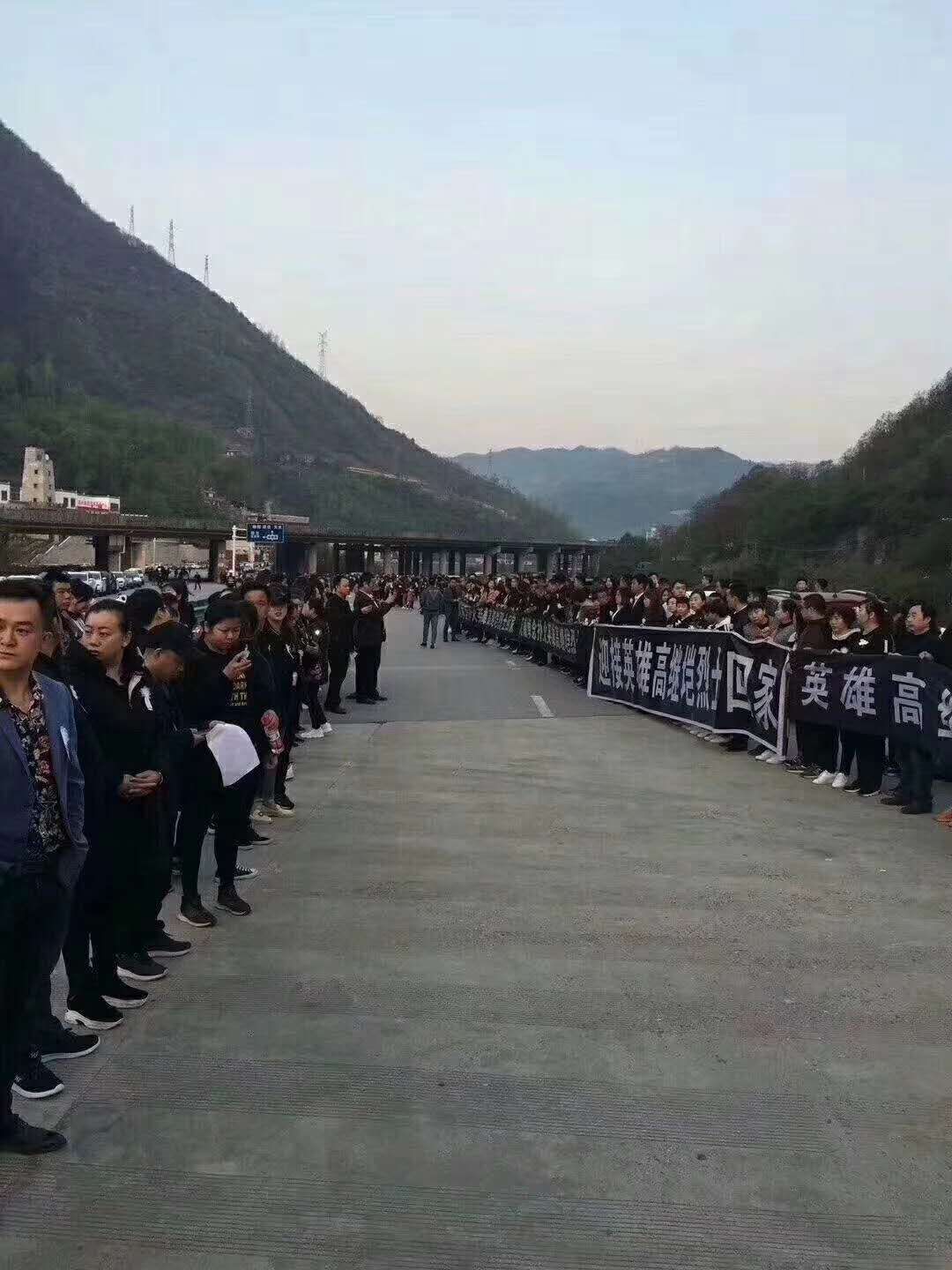 4 月6日8点左右救火英雄高继垲烈士叔叔的灵车抵达汉中略阳,妈妈虽然没带我们几个去现场接英雄叔叔回家,但我却看到妈妈看着手机刷屏的消息抹泪……我接过手机看到场面也不禁流下了泪水!