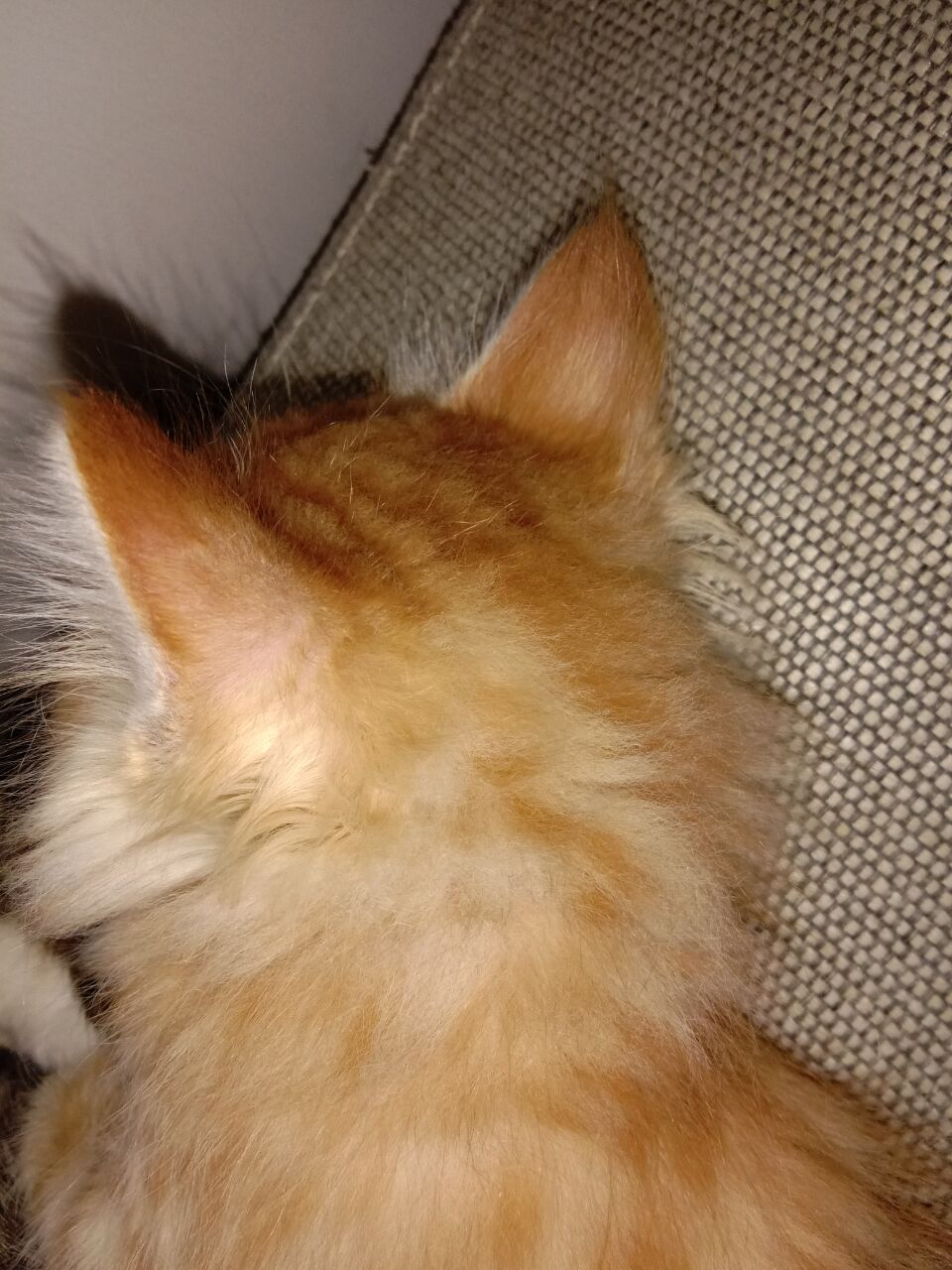 阿吉初来我家时,只是未曾断奶的猫崽,奶奶见它可怜, 便日日煮上一些稠粥,捣碎了喂给它,白天将它放在旧衣服围成的温暖小窝中,晚上便抱在怀里,一起入眠。
