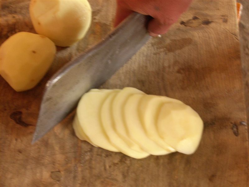 啊!那诱人的土豆片哟!虽不及海鲜的美可口,也不及大鱼大肉的香辣,可每当在妈妈的铁铲下看到它,我就谗的直流口水,总缠着妈妈问这问那。