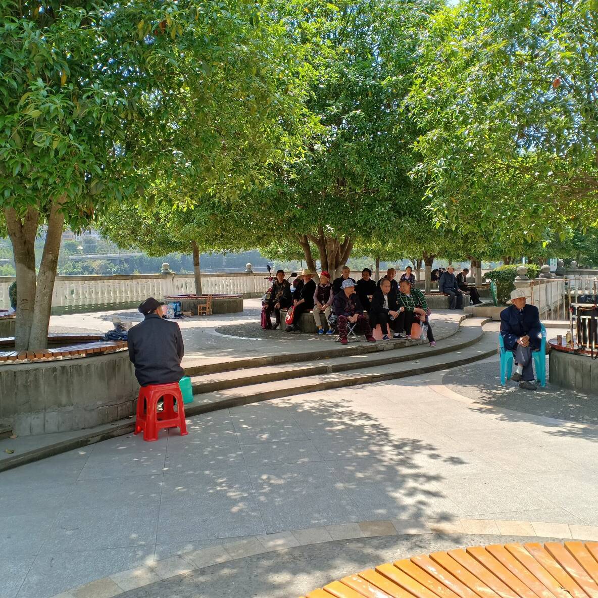 当然,走一段路后老人也会休息,据说,那个时候,大家比较喜欢红军渡、梨博园、滨江花园等地,所以游百病的时候总会在那里歇歇脚,分享一下彼此的美食,或者看看同伴跳跳舞,一般来说那个时候他们会跳咱们苍溪有名的独角兽舞;有时候也会唱歌,唱的最多的还是咱们的盘歌。大家你一言,我一语,彼此嬉笑一番,“渣滓浮叶”一下,玩的可开心啦。