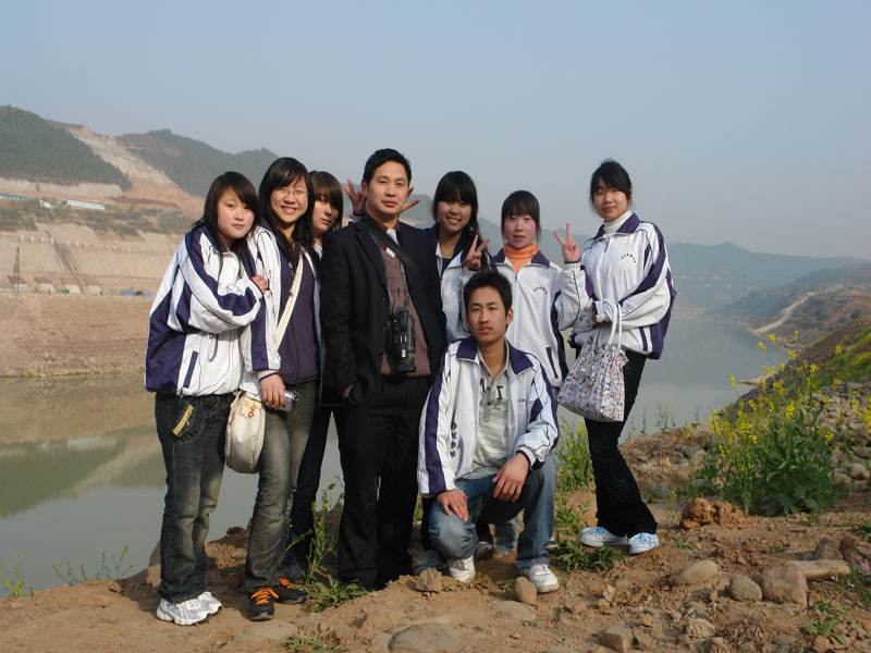 最后我们在这个具有特别意义的地方和老师合影留念。我想我们的家乡会越来越强大。