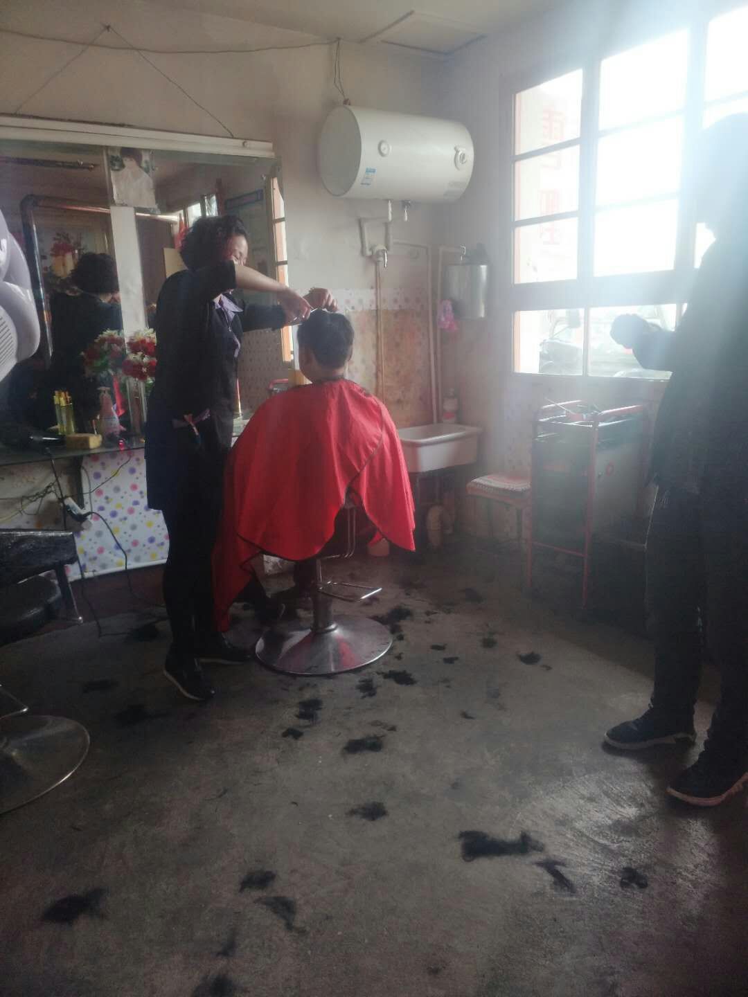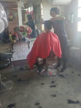 这时进来了一位和我年龄差不多的女孩,这个女孩儿要剪短发,妈妈先给她洗了头发,让她坐在椅子上,妈妈给她围上围单,固定在她的脖子上,这样可以防止头发掉进衣服里,做好了准备工作,妈妈就开始给她剪头发了。妈妈熟练的拿起剪刀和梳子,先从左边剪起,只听剪刀咔嚓咔嚓,女孩的头发纷纷落下,不一会儿的功夫,左边就剪好了。接着是剪右边,后面和头顶,同样的快速,一坨坨头发纷纷落下,妈妈的脚被头发包围了,妈妈无法走动,我拿起了笤帚,把头发扫的一干二净。妈妈又开始修剪女孩的头发,妈妈小心翼翼地修剪着,妈妈左修修,右修修,没一会儿就修剪好了。这个女孩儿非常安静的坐着,心里一定会想:随便这个阿姨怎么剪,我相信她一定会帮我剪个好看的发型。