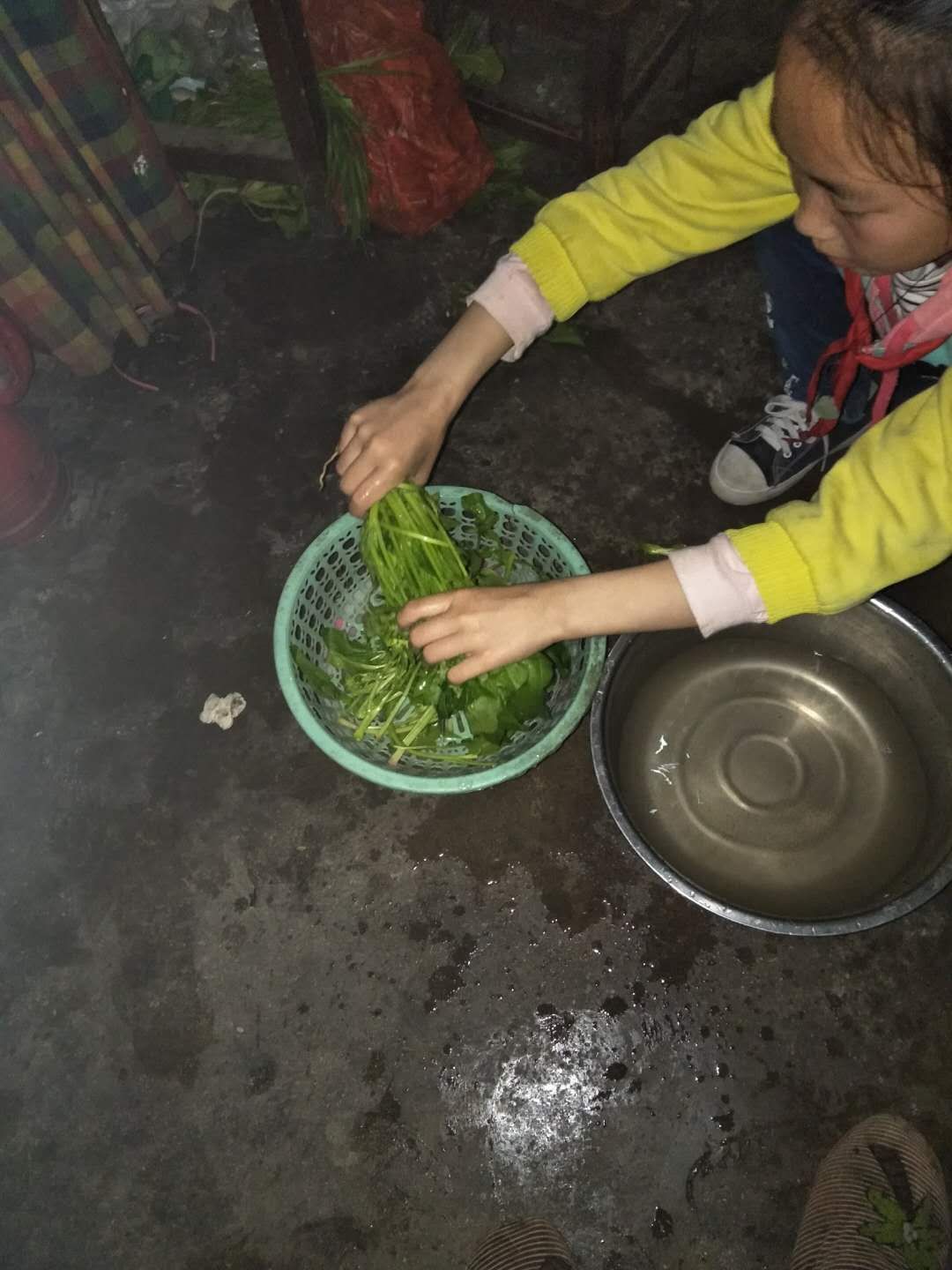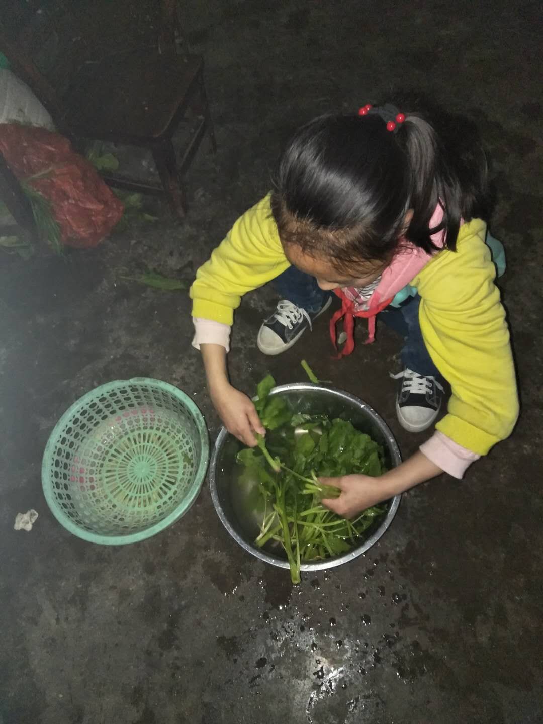 洗完后,我再过两遍清水,最后捞起青菜吧水滴干,放进盆里。 看着洗的干干净净的青菜,我的心里乐开了花。
