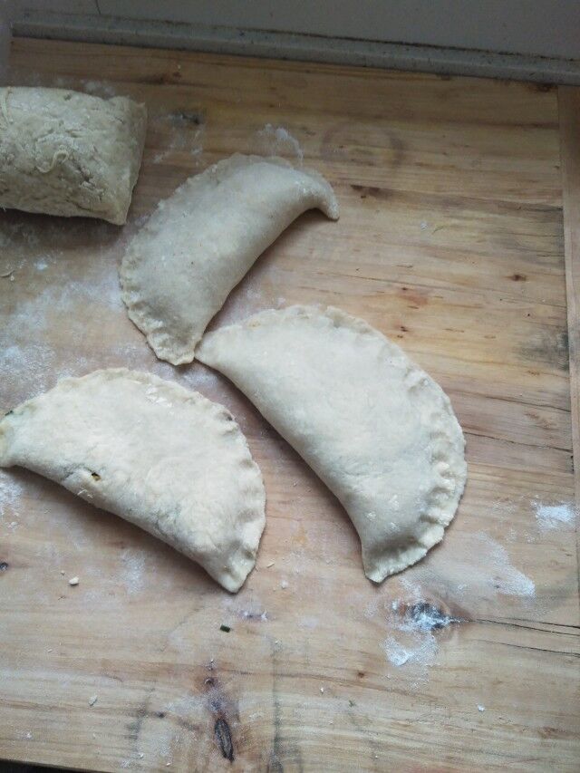 刚刚才弄出来,还很烫,我爸就让我快点端到桌子上,我爸一吃,我也受不了了,我立马伸手去拿,"啊!烫死了,呼呼,"这么烫能吃下去吗?转眼间,我爸已经半个吃下去了,我才开始吃,轻轻一咬,只咬到了面,这面叫烫面,吃起来有一些糯,还带有一丝丝的甜味儿,"嗯,真香,"再咬一口,韭菜与面一起咬上,韭菜的微辣与香味和着面一起,刺激着我的味蕾,豆腐更是添了一份别致的香味儿,我想,三楼的人都闻到味儿了,这也太香了,简直让我欲罢不能,我大快朵颐,三五下就吃完了一个,我妈问我在吃不吃,我两眼冒光的看着碟子,口水都要下来了,嘴上却说着我要减肥,再不吃,说完便赶紧进了洗手间,转瞬,你们会看见,饭厅桌子边正坐着个胖子在那儿吃得津津有味的,没办法,我嘴上说着不要,可身体却太诚实了,进去洗了个油手出来,又拿着吃上了,我妈见了问,"你咋又坐下吃了,那你洗手为了个啥呀?"嘿嘿"一笑之后我再没搭话,在那儿放飞自我,开心的吃起来了,当然,最后的结果就是减肥的大计失败,又吃饱了。