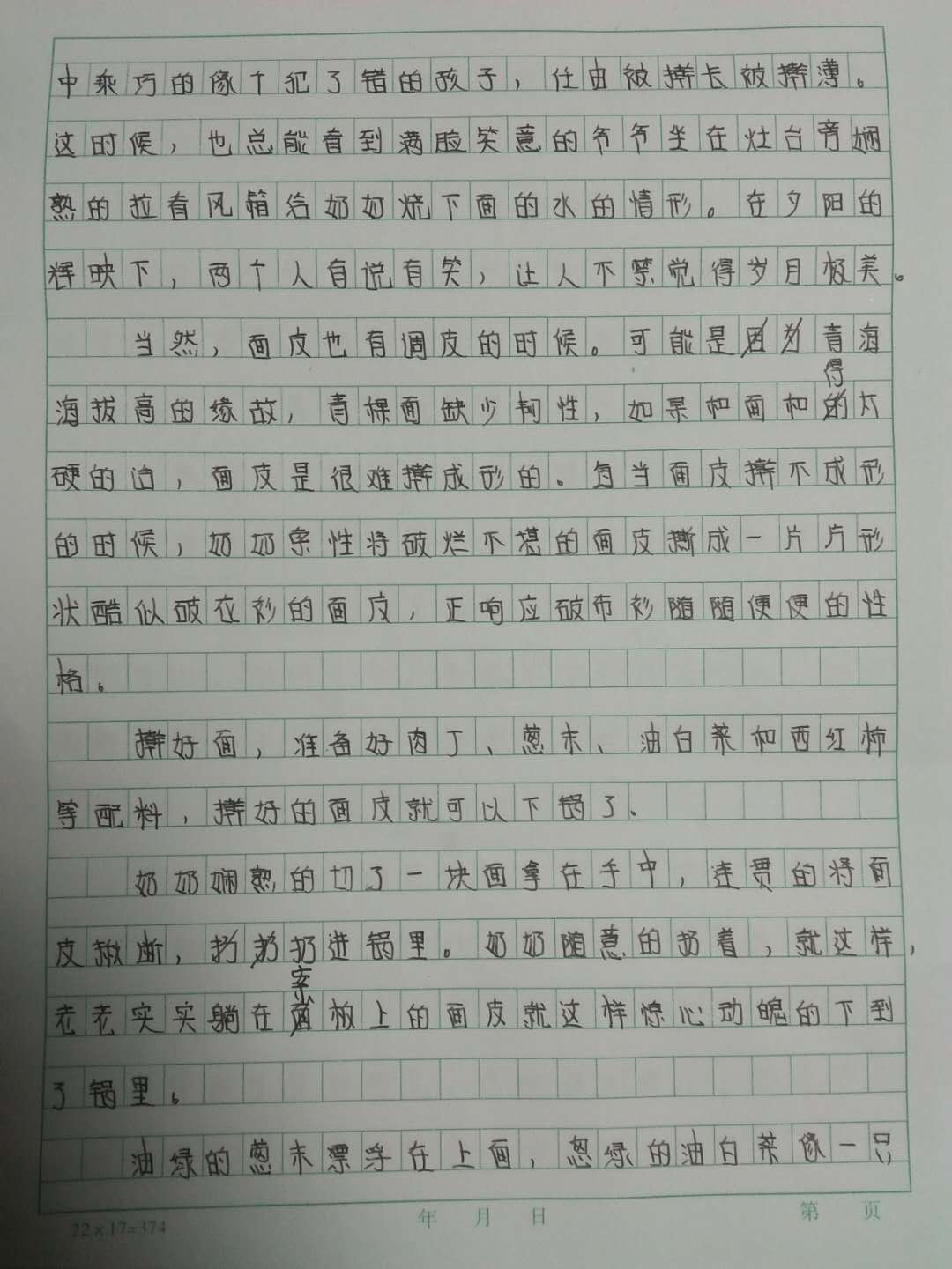 奶奶娴熟的切了一块面皮拿在手中,连贯的将面皮揪断,扔进锅里。奶奶随意的扔着,就这样,老老实实躺在案板上的面皮就这样惊心动魄的下到了锅里。