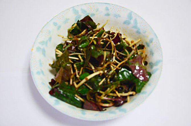 凉拌荠荠菜的做法基本和折耳根一样,不同的是荠荠菜先要在锅里用开水焯一下。吃着米饭,就着美味的凉拌菜,别提多爽了!老人们常说,春天的野菜最养人,也最美味。怎么样,还是多吃点这些天然的绿色食品吧!
