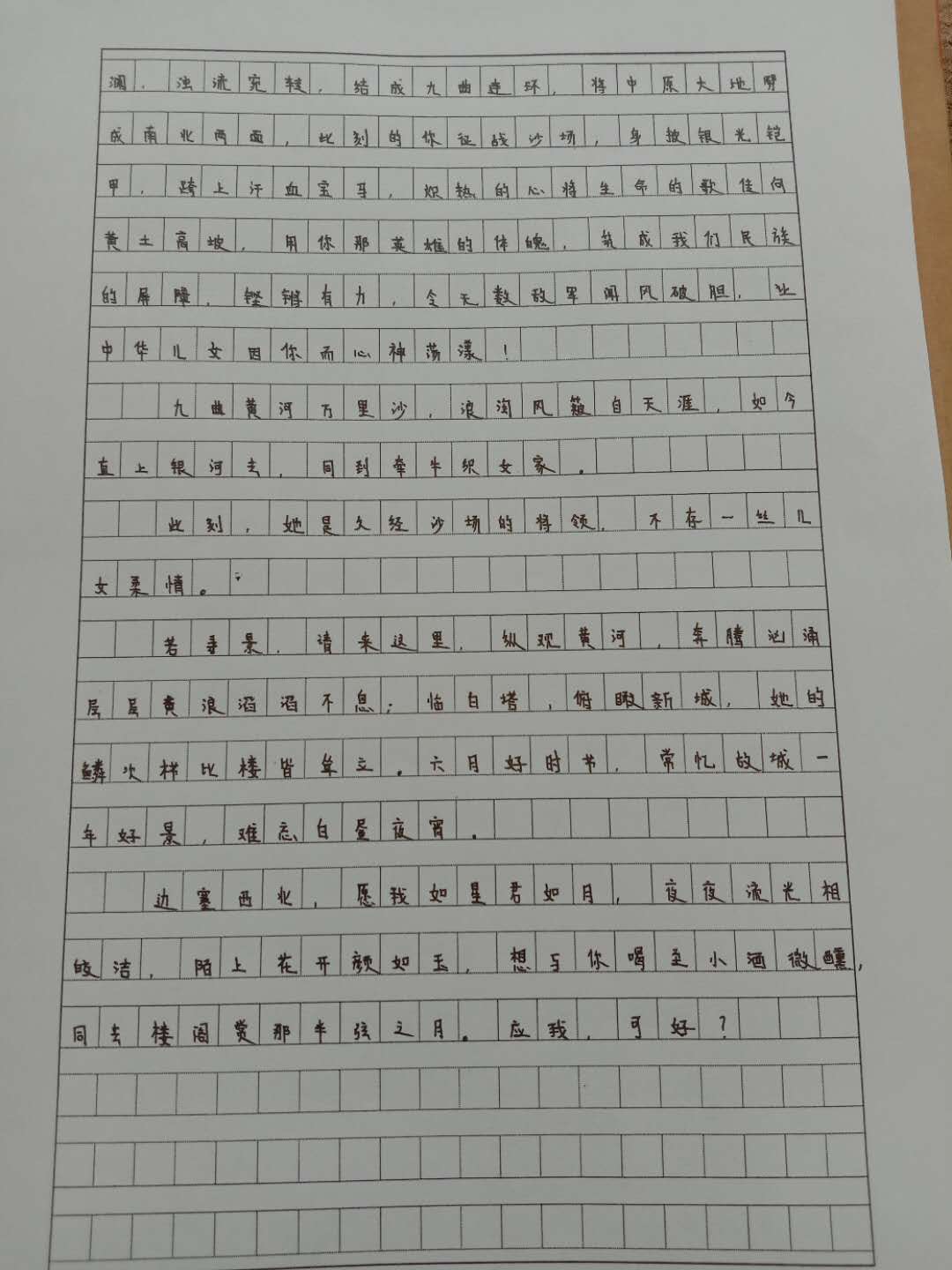 遥想当年,你一路披荆斩棘,掀起万丈狂澜,浊流宛转,结成九曲连环,将中原大地劈成南北两面,此刻的你征战沙场,身披银光铠甲,跨上汗血宝马,炽热的心将生命的歌传向黄土高坡,用你那英雄的体魄,筑成我们民族的屏障,铿锵有力,令无数敌军闻风破胆,让中华儿女因你而心神荡漾!
