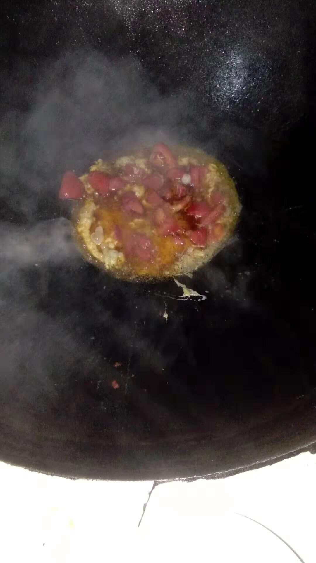 万事俱备,只欠炒菜。因为我之前没有炒菜经验,所以在水还没干时我就放了油,油进了锅就像是调皮的孩子,活蹦乱跳的,把我吓得都不敢进厨房了。过了一会,油慢慢的安静了下来,我便蹑手蹑脚的把蛋液倒了进去,这时,油又沸腾了起来,我一手拿锅铲,一手拿锅盖,慢慢的翻炒着,接着我又把西红柿酱倒了进去,终于,西红柿炒蛋做好了。