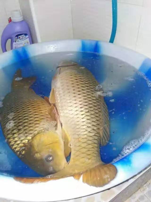 第二天一早我和爸爸吃完饭就去守杆,但是爸爸因为一晚都没有睡,所以守了一会儿就去休息了。我一个人守到了中午。爸爸也休息好了就去换鱼食。我就在一旁呆呆的看着,只听扑通的一声。鱼食就进了江水里。谁知道刚换完一杆食就有大鱼上钩了。看着鱼竿弯下去的程度,这次肯定是一条更大的鱼。看来又是一场的持久战啊。爸爸接过鱼竿就去拉鱼。当鱼没有力气时,爸爸便一气呵成将鱼拉上了岸。又是一条大鲤鱼,真好!鱼上来之后爸爸把它放进大袋子里。就又去换鱼食了。我就又没事干了。