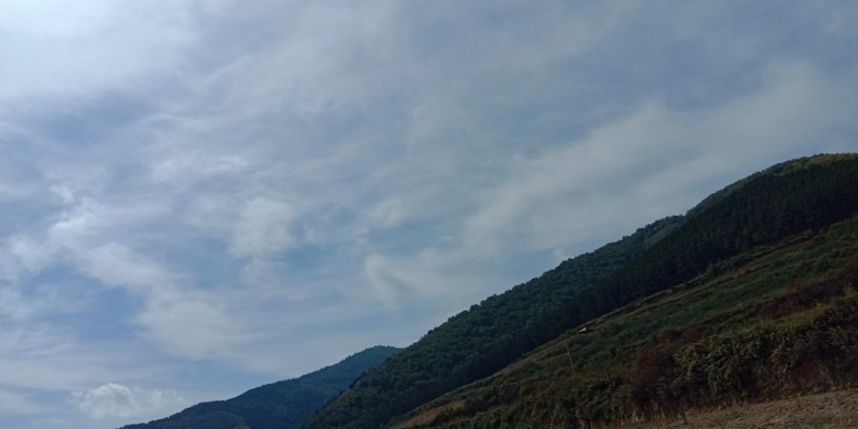 我家的田地就在大山脚下,每次我去下地里,都要走过一条条窄窄的小路,那些小路往往都是杂草丛生的,有时还会从草里窜出几只小野兔。到了地里,抬头向上望,便能看见大山安静的在那里陪伴着我们。它好像是一位母亲,当我们在地里干活时,它总是默默地守望着我们。在大山的山顶上,总有几朵闲云飘来飘去,一时间,蓝天,白云,还有青山便宛如画卷一样。