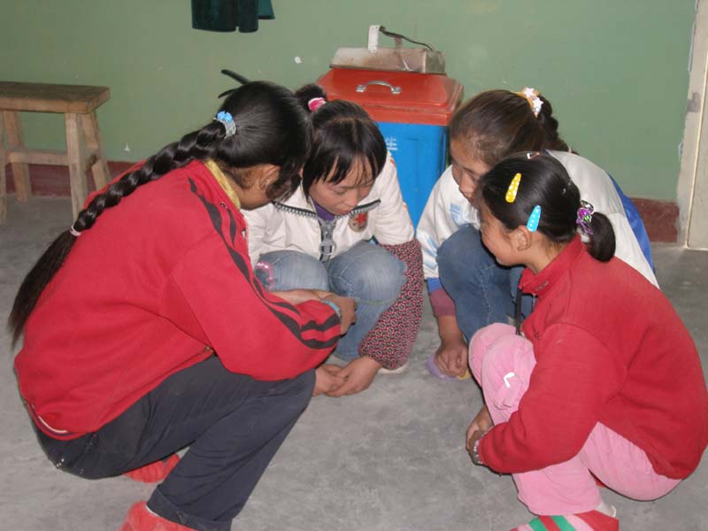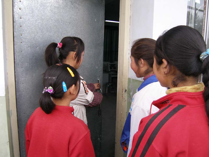 我迅速把书包放回教室后,拿起钥匙,和他们一起打开了门 。