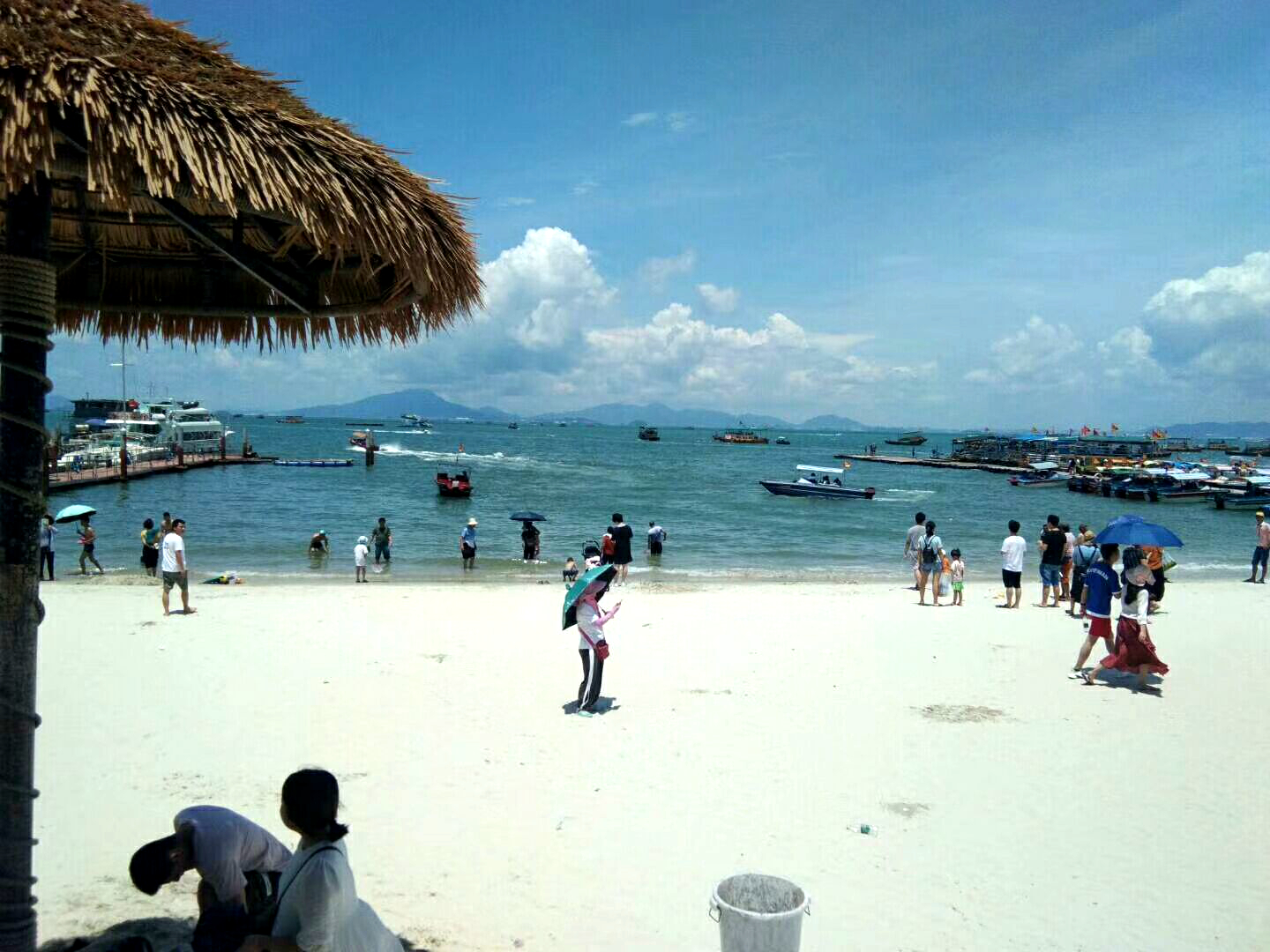 看着大海我的心胸似乎也变得开阔了,我在沙滩上奔跑,奔向大海,让海水拍打我的身体,这时,我看见一首游艇从我面前经过,我看向它来的地方,原来,那边的海滩上有很多的出租游艇,于是,我陪着爸妈一起去体验了坐着游艇在海上遨游的快乐。
