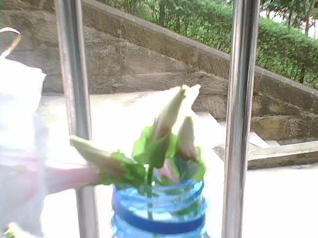 站在栏边,看着朋友从山上采回的喇叭花正在向命运抗争,它那不向命运低头的姿态感动了我。