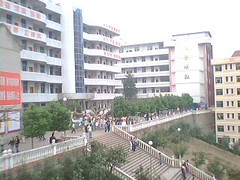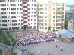 阶梯两边是小草和一些小花,这儿虽然没有森间的鸟语花香,但它们伴随着所学子的朗朗的读书声,向国家送去一批批新人材。