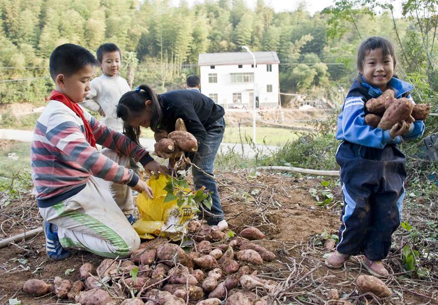 外婆实在看不下去了,从我手中拿过锄头让我看着她的样子学。只见外婆腿成八字步,扛起锄头对准红薯藤根部十多二十厘米的地方用力往下一挖,就这样好多红薯被完整的挖了出来。
