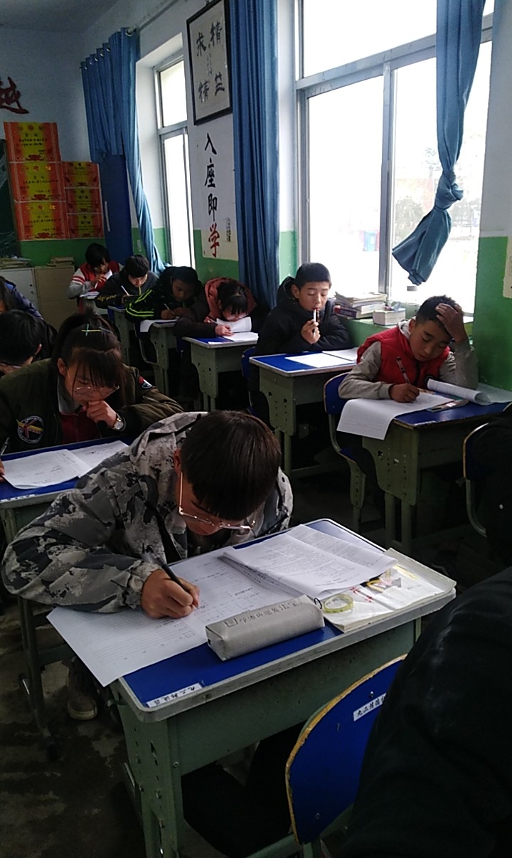 同学们在认真答卷,有的在奋笔疾书,有的在眉头思考