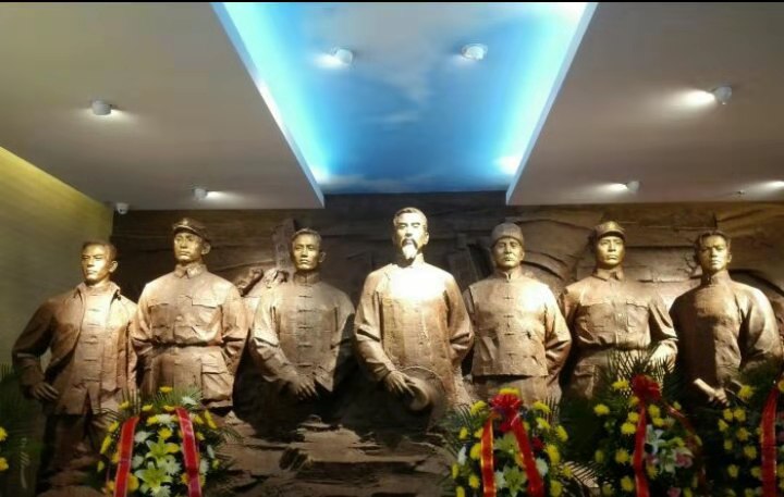 展厅门口的七烈士群雕像