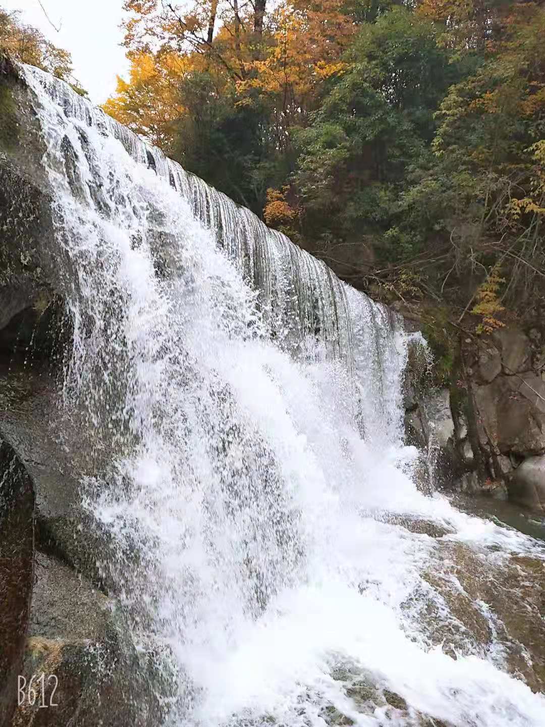 沿着溪边,我们看到正前方有一个小瀑布,水流湍急,像是要进行比赛。好像要和凹凸不平的石头进行搏斗。水浪吼叫着,仿佛在向这些弱小的石示威,它们疯狂地发起猛攻,猛烈地拍打着石头,石头满不在乎,傲慢地站在那里。看到这里,我不禁想起李白的诗。"飞流直下三千尺,疑是银河落九天。"