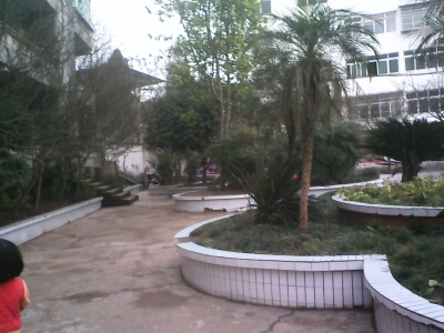 讲话台下边是两个大大小小的篮球场,一宽一窄,一长一短,这是我们的前操场(当然我们还有后操场了)。穿过篮球场,就会看到一座新建的办公楼,那是2008年灾后重建的,是老师们办公的场所。办公楼与新教师宿舍楼是被我们称为“最豪华”的两栋楼,真可谓是高端大气上档次。这两栋楼之间隔着学生食堂,从学生食堂往前走就到了我们学生宿舍,那是同学们起居的地方。