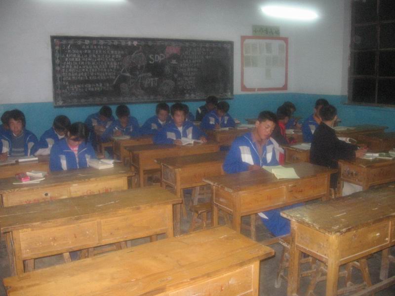 学校里,由于同学们来自各个偏远的村庄,因此同学们都在学校住宿,每天晚上都上晚自习。由于电力设施的不完善,动不动就停电,导致同学们不能在电棒下上完晚自习。