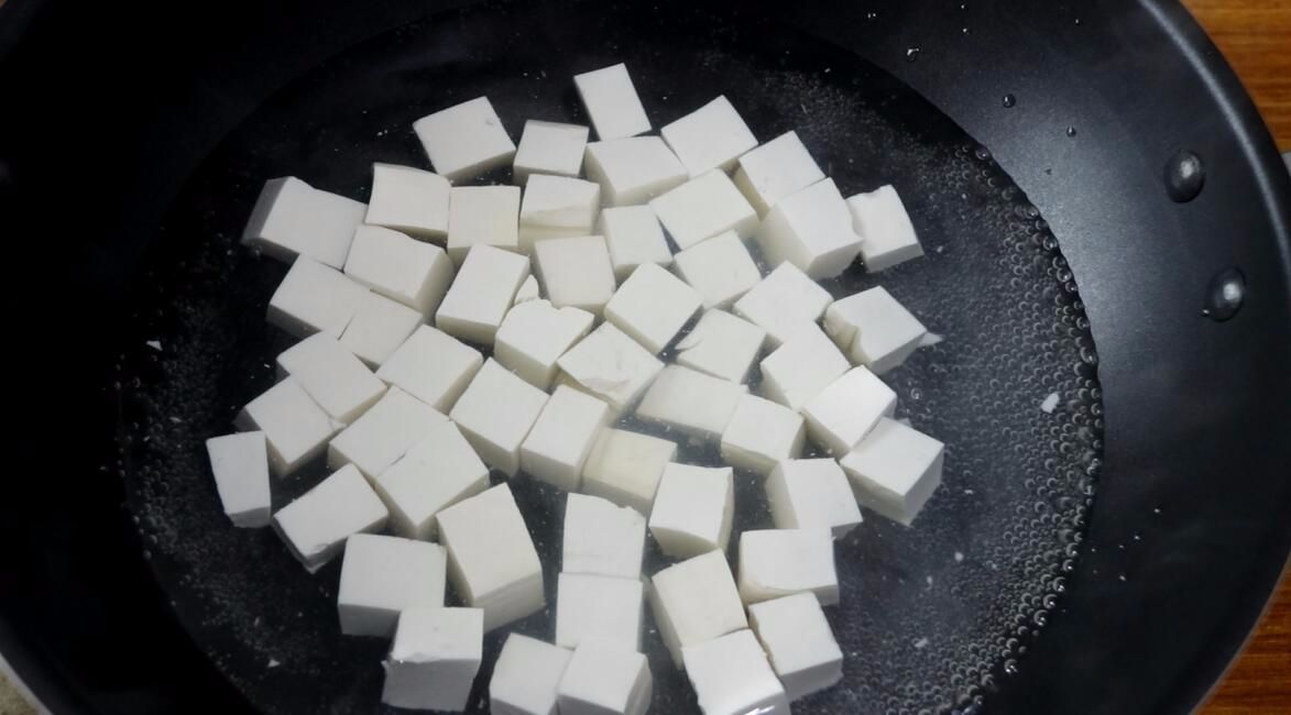 看上去麻婆豆腐的做法很简单,其实是有一定技术含量的:先把豆腐切成一小块,一小块的,把他们放入热气腾腾的水中煮一煮,再把它们捞出来,一会儿再利用。接着,把肉切成极小的颗粒,用植物油把肉抄酥。然后,向锅里倒入适当的油,打开火,向油中放入事先准备好的干辣椒、花椒和姜片,等油在七、八十度时放入豆腐丁,再加上适量的淀粉,翻抄几下,再加入适当的盐、黄豆酱、豆瓣酱,点上一点白酒,最后用小火慢慢烧两分钟,在快起锅时加入少许的味精,这道色香味俱全的麻婆豆腐就完成了