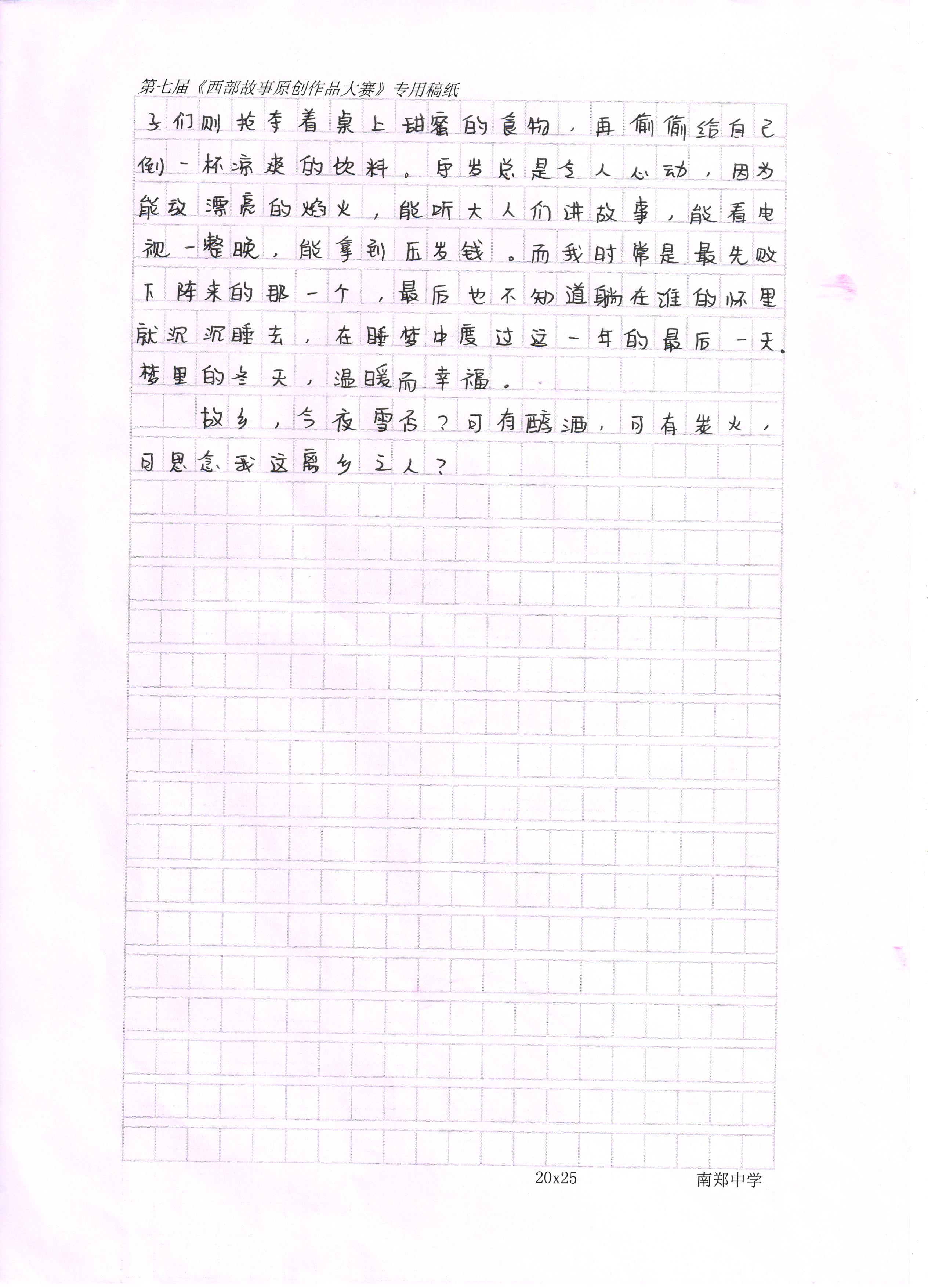 “爆竹惊残腊,冬春此夕分。”在那个小小村子里的小小的我,最期盼的就是除夕,这一天的温暖与幸福是一年中来得最猛烈的。这天是被油锅里噼里啪啦的响声叫醒的,大人们在“下炸”,为年夜饭和之后几天的吃食做准备。孩子们则忙着贴年红,手掌被红纸染得越发红彤彤,会写大字的外公身边总是最热闹的,孩子们总惊奇于外公写在红纸上方方正正的字,那字似乎比春天的桃花还要俊俏,比搏击长空的雄鹰还要遒劲。除夕夜的老屋中摆了一大张桌子,佳肴堆满桌面,电视里的春晚也玩得热闹,大人们举杯对饮,畅谈一年中的辛酸苦辣,孩子们则抢夺着桌上甜蜜的食物,再偷偷给自己倒一杯凉爽的饮料。守岁总是令人心动,因为能放漂亮的焰火,能听大人们讲故事,能看电视一整晚,能拿到压岁钱。而我时常是最先败下阵来的那一个,最后也不知道躺在谁的怀里就沉沉睡去,在睡梦中度过这一年的最后一天。梦里的冬天,温暖而幸福。