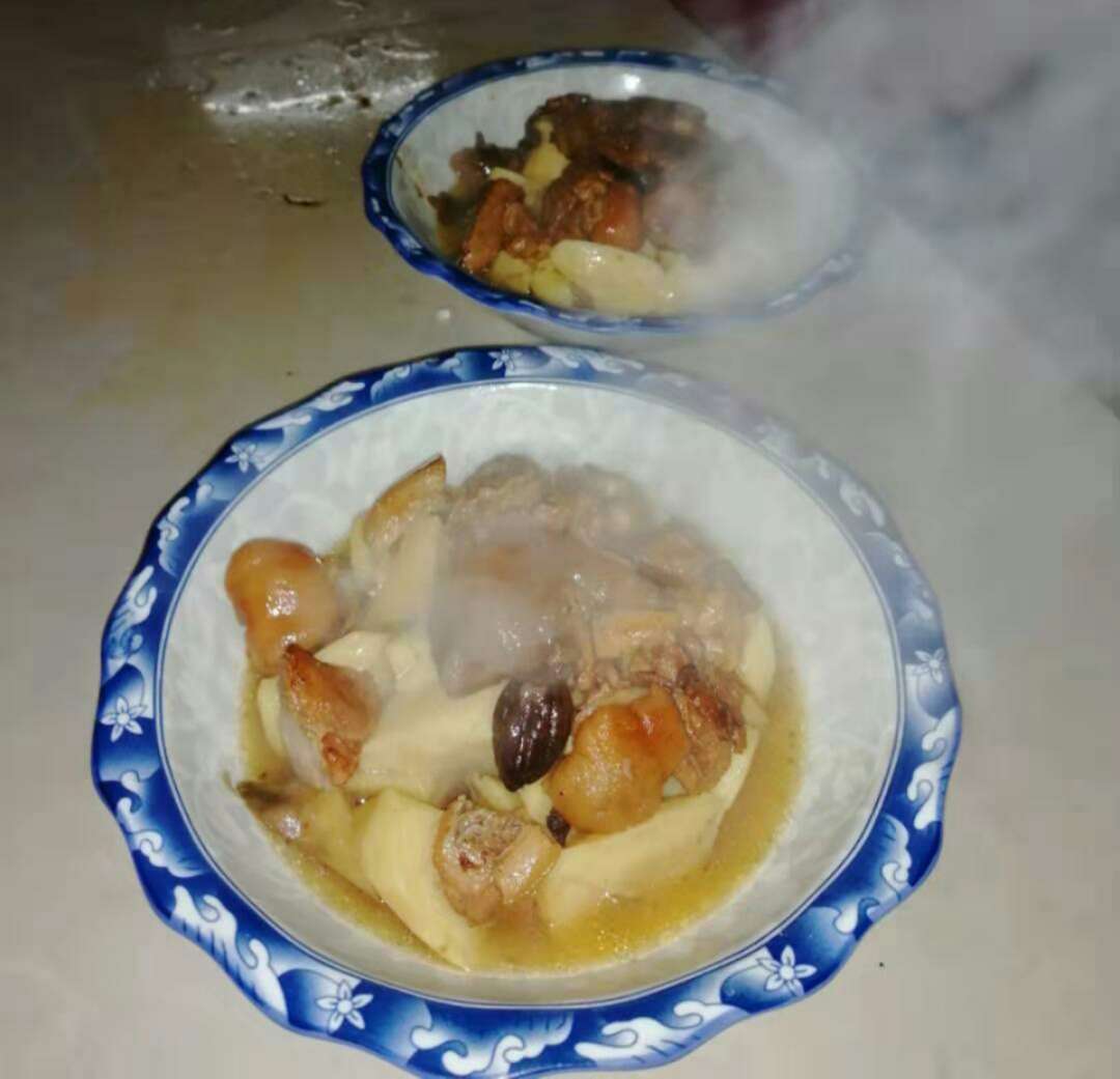 至于蒸菜的配菜,就更加讲究了。有雪白的山药、红艳艳的胡萝卜、水嫩的白萝卜、黄橙橙的鸡蛋苕、软和的黄花、银白的粉丝、细长的豆芽、豆腐、粉带、木耳、金瓜……讲求荤与素的结合,气味相投,相互调和,色泽互补,营养均衡。如鸡肉一定要配上几块干香菇,鸡蛋饺子下垫豆芽或豆腐,暗红的酥骨里搭白色山药,肥肉配灰黑的豆酱或腌菜,肥硕的肘子撒一点碧绿的香菜,糯米饭蒸在黄澄澄的金瓜里,甜羹配上晶莹剔透的银耳。 上笼蒸菜,每一层笼屉里的蒸菜必须是一样的,避免相互串味儿。大火把底锅水烧的沸腾,余下时间要用均匀的小火持续加热。上笼蒸六个小时,有的蒸的时间更长一些。蒸笼里的气流如波涛翻滚的洋流,又似好似一片雾海云山,各种菜肴的气味相互渗透弥漫,香气飘散在整个院子里,我们像馋嘴的小猫围着蒸笼坛坛转,垂涎三尺。