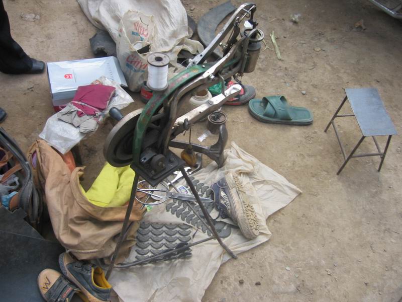 我又问:“多少钱”,阿姨说:“学生不要钱。” 这位阿姨,她补一双鞋只要几毛钱,就能让两个孩子念书,我十分敬佩她!