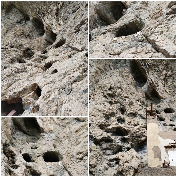 燕子崖崖壁上洞穴众多但都很浅。那是燕子居住的地方,每每到了夏天一群群燕子在那里嬉戏打闹,我家门前常常会有燕子光顾。奶奶说曾有一个观音像被放在崖中洞穴里,很高且上去的路因多年未有人走早已风化严重,很危险,这才使观音像幸免于难没有被砸。可惜在我五六岁时被人偷走了。如今也不知道是谁偷的。所以我从未见过观音像,只能从奶奶的只言片语中了解一些。