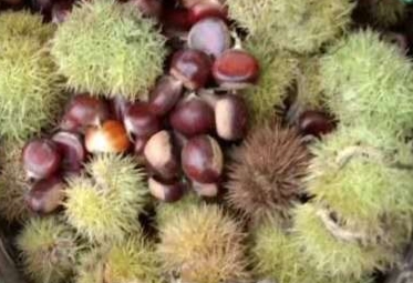 家乡的美食很多,有—样最好吃,它的果实高高的挂在树枝上,果实外表亼有一层壳,壳的外面还有一层,而且还带着刺,你们猜它是什么?对是板栗。