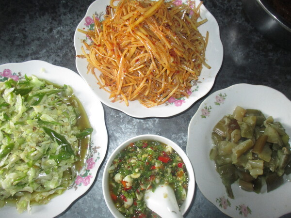 把菜豆腐和节节做完才是成功的一半,菜豆腐节节最重要的是配菜,我们通常做的菜有:凉拌茄子、炒酸菜、凉拌土豆丝、辣椒炒包包菜等等,在配上酸辣椒,那就美味的不可言说。