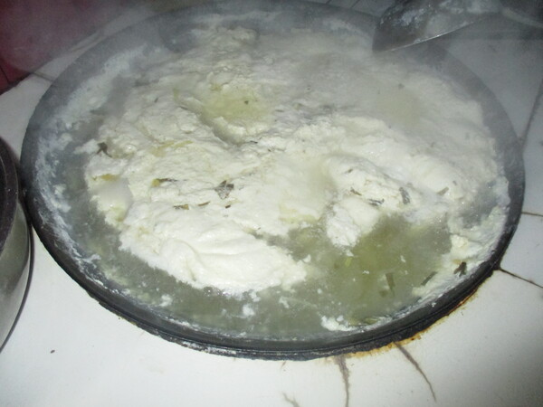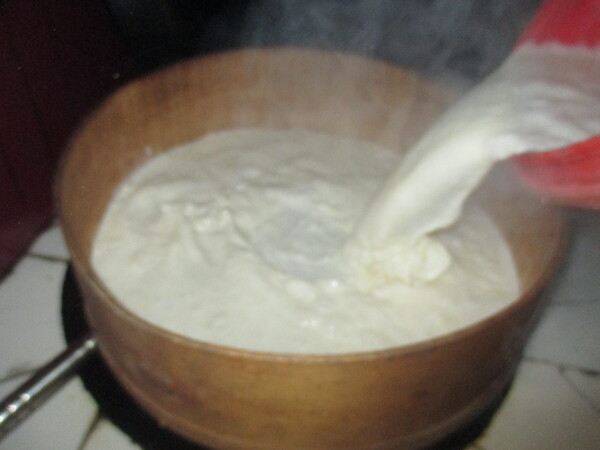今天给大家介绍一下做法,首先前一天晚上把黄豆倒进水里浸泡。第二天把黄豆捞出来打成豆浆,把打好的豆浆倒入锅中用大火烧开。然后把事先准备好的酸菜水一点一点的倒入沸腾的地方慢慢煮就形成了菜豆腐的样子。再继续用小火煮十五分钟使它更有口感更加美味。