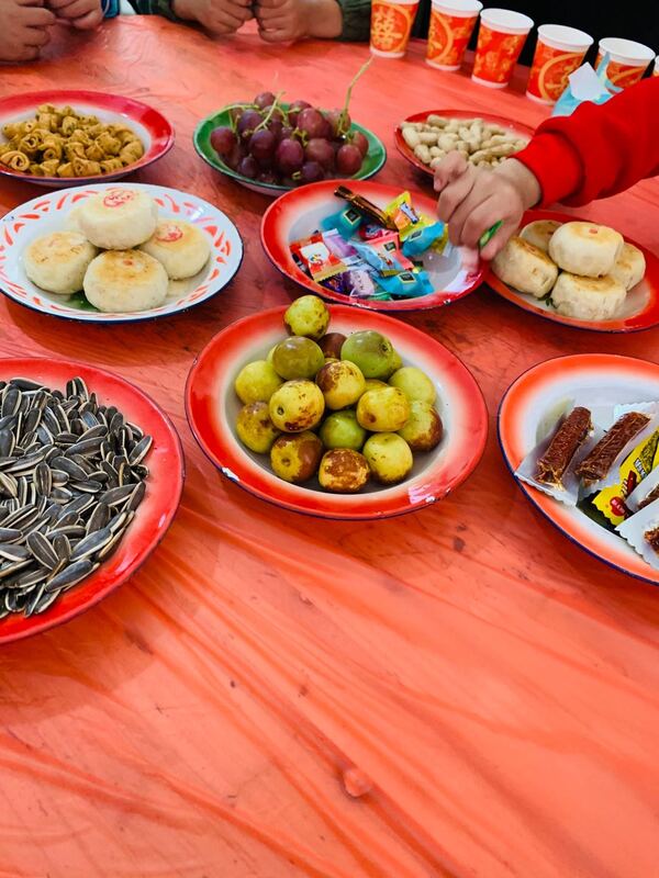 十大碗也是一大特色,更是古尔邦节上不可或缺的一道美味。两大碗肥美的牛羊肉铺在白白的萝卜块上,撒上一把葱花淋上一勺热汤。即可出锅。两大碗喷香的蛋饺铺在豆角之上,同样撒一把葱花淋一勺热汤。六个小脚皆是色香味俱全的小炒。这就是所谓的牛羊肉宴席。坐席也有一定的讲究,按辈分而论。辈分高者坐上席而后一次轮番而坐。大家都热热闹闹的吃着美味佳肴庆祝着古尔邦节。