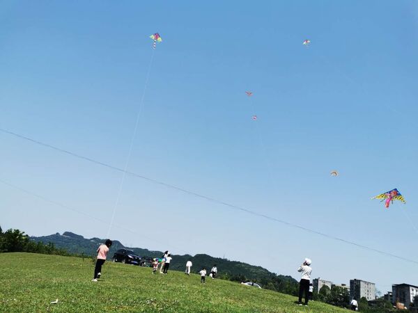 图4:春回大地,万物复苏。孩子们在平坦的草地上放风筝。风筝的样式多种多样,有自由自在的"美人鱼",威风凛凛的"老鹰",还有翩翩起舞的"蝴蝶"……他们各自拿着自己的风筝线,仰望着天空,在草地上随风跑起来。哇!风筝越飞越高,越飞越小,就好像天空中的小鸟一样,自由自在的飞翔。如果时间可以倒流,我希望它停留在那一天,留住那一刻的美好时光。