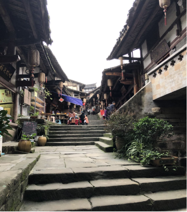 古镇的巷子四通八达,纵横交错,走进这悠长的小巷里,就像进入了一座有去无回的迷宫,厚重干净的青石板路面,缝隙里滋生着薄薄的青苔,走在上面时还回荡着轻轻的足音。层叠的街巷,参差的房檐,高低错落的台阶,自然天成,尽显古朴本真。