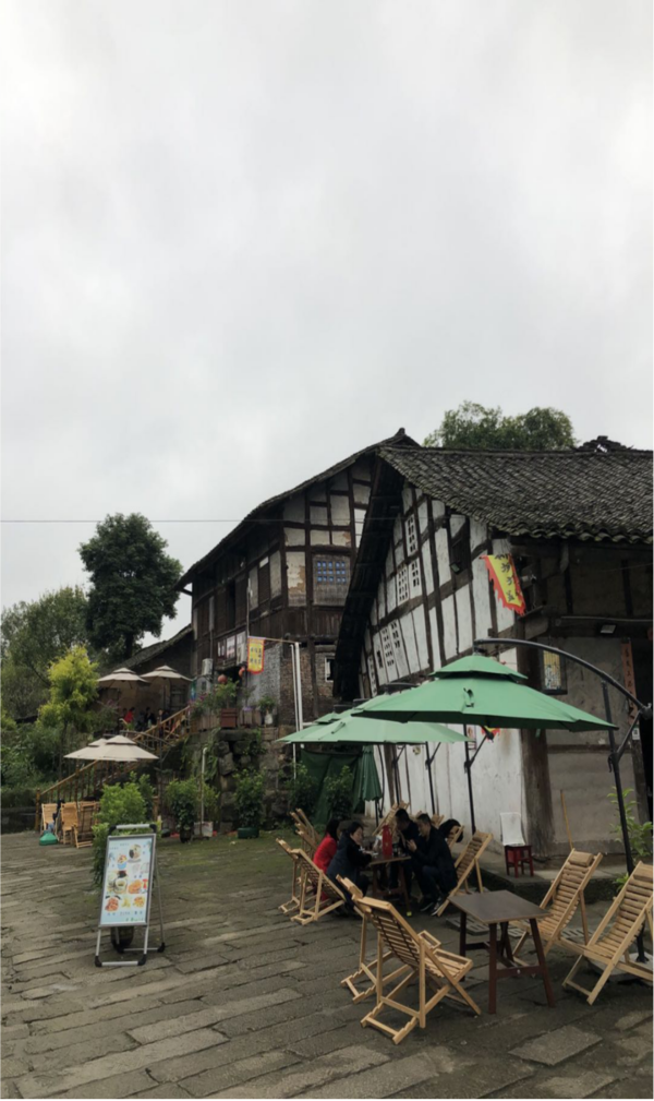 古镇的房子十分奇特,这些房屋大多都是沿河而建,房子是用木头砌成的,像搭积木一样方方正正的,最奇特的是有些房子经历岁月的洗礼后,房梁虽倾斜但屹立不倒。房屋结构大部分都是两层楼房,有天井,有木质走廊,还有漂亮的镂花窗棂,屋顶上,棕色的瓦片上还有一些绿油油的青苔,房檐下,一张小方桌,几张躺椅,古镇的居民们聚在一起,喝着热腾腾的盖碗茶,悠闲度日。