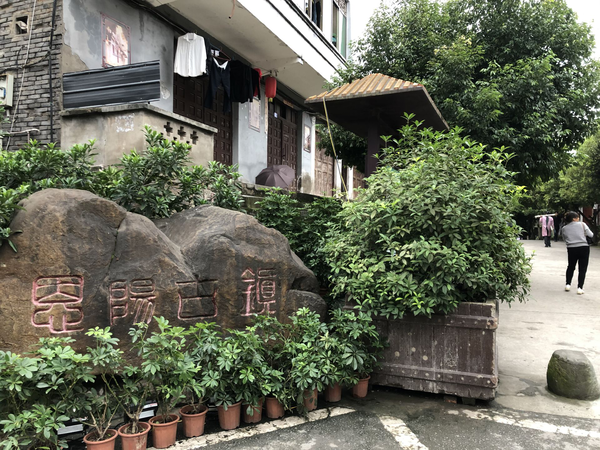 一踏入恩阳古镇,一块巨大的棕黄色石头映入眼帘,上面刻着醒目的浅红色"恩阳古镇"四个大字,透露出重重的历史印迹。
