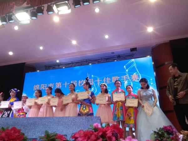 “我想你在羌山,从清晨到夜晚,羌红捧在手里面,等你来到我身边。”九号选手去掉一个最高分9.8分,去掉一个最低分9.3分。最后得分9点63分,下面有请北川民族中学上台领奖,荣获本次绵阳市第九届校园十佳歌手,捧着奖状那一刻,我的眼泪再也忍不住了,情不自禁的夺眶而出,我知道这是我作为一个羌族人的骄傲。