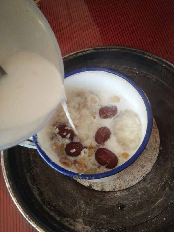 奶奶生日这天,姑姑带着她的两个孩子过来了,奶奶欣喜万分,打开了那桶已经发酵好的醪糟,奶奶拿着瓢,撇了一口米酒,在嘴里回味一下:"老样子,凑活!"接着舀了半缸子,添了开水,放了一勺糖,放在炉子上煮沸,等到煮沸又添入淀粉水,让醪糟喝起来更醇,不那么寡淡。