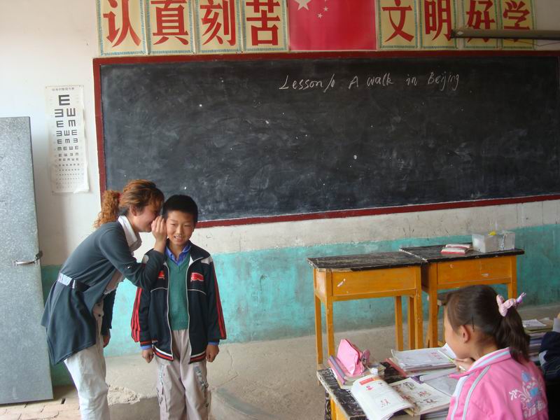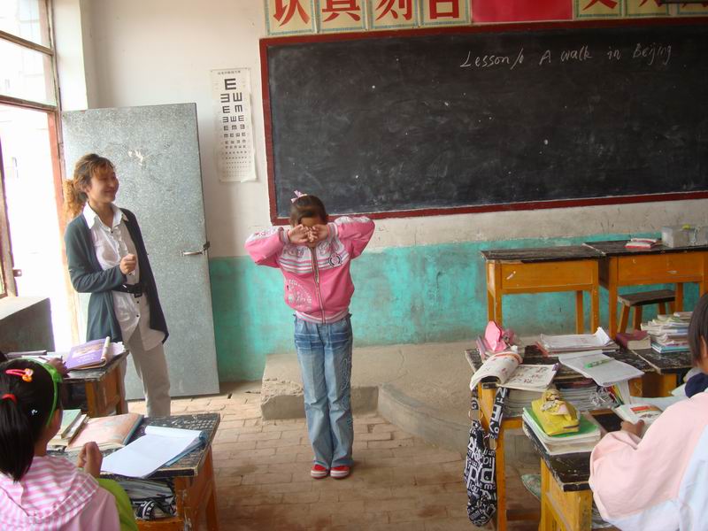 那是两个星期前的事情了,第四节课是英语课。铃声响了,英语老师迈着轻快的步伐走进了教室,然后对我们说:"今天我们来学习第十课。下面我们先做一个游戏,这个游戏的规则是老师点名让一个学生上讲台表演,然后告诉你一个单词,让你做动作,下面的同学根据动作猜出单词。"第一个上台的是我,老师伏在我的耳边说了一个单词"笑",我做了个跳的动作,同学们都猜出来了,同学一齐说英语"Laugh"。第二个上台的是邢倩,这个平时就比较调皮的女孩,先是眼睛骨碌碌的转三圈,然后做出一个哭的样子,两嘴叉往下一撇"哇——"逗得大家立即哈哈大笑,同学们笑是因为她做的动作太可笑了,也太容易猜出来了。所以同学们边笑边大声的喊"哭——","Cry!"第三个上场的是闫梁,她知道了这个单词的意思后转向老师面前,双腿往上一跳,举起双手向老师拍去。这时,班里的同学都被闫梁的动作搞的有的惊呆了,有的同学笑的上气不接下气,老师也被他搞笑了。