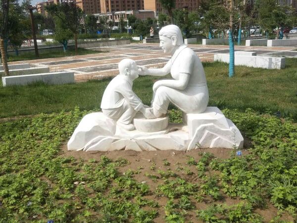 这是市民公园中一个孩子给长辈洗脚的雕塑,看长辈的神情,真的是无比的欣慰呀,体现着我们中华民族孝亲敬老的传统美德。
