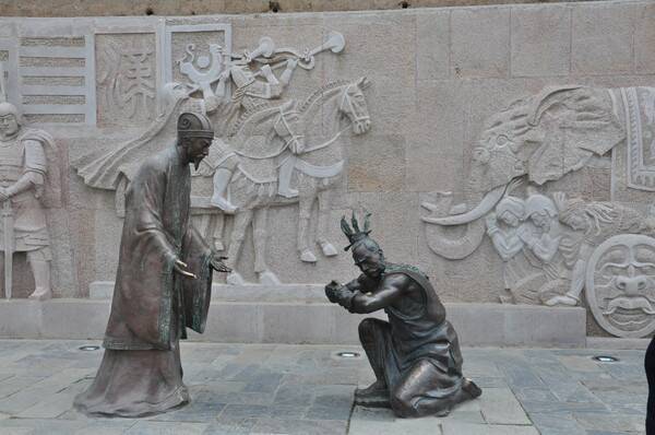 图4:七擒孟获——为重兴汉室,诸葛亮点兵南征,与南蛮首领孟获斗智斗勇,不料孟获七次被诸葛亮抓住,前六次孟获接连被抓,诸葛亮,只是笑了笑,就把孟获给放回去了,到了第七次,孟获又一次被抓,诸葛亮又放他回去,孟获却从心底里佩服诸葛亮,最终顺服汉蜀。