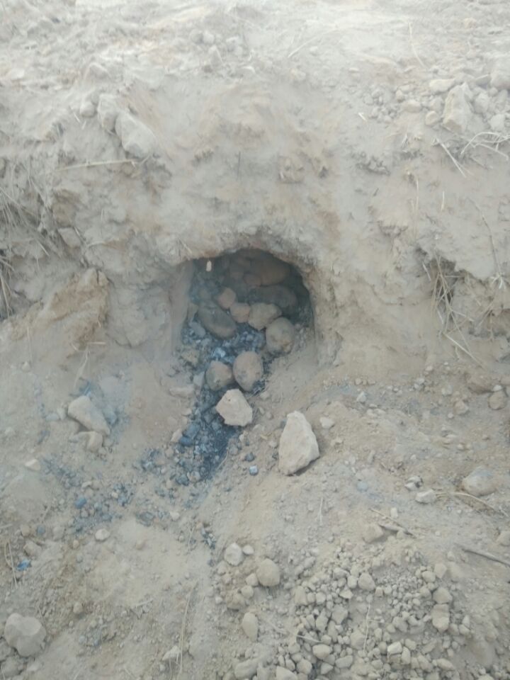 面的事情就是来找一堆土疙瘩,这是整个烧洋芋最空难的一部分一不小心就会重新在做,要小心翼翼的吧那些土疙瘩堆起来,把那些土疙瘩放在挖好的灶台上面堆成一座小山里面是空心的堆好之后再到下面进行烧灼直到把那些土疙瘩烧红,第三步骤就有我一个人来执行了,用铁锹的后把先 最上面的一些土疙瘩倒下去打碎再从上面吧洋芋放进去最后再把剩余的土疙瘩到下去,最后就是用那软土掩埋实。最后就是再等上一个小时美味的洋芋就出炉啦!