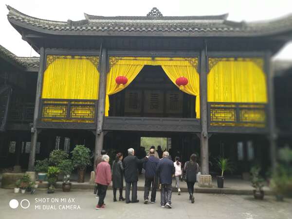 这是万寿宫的戏台。黄色的帐帘配着红红的灯笼显得喜庆万分,周围的椅子可供看戏的人们做再沏一壶香茶真是称得上人间享受。如果放起一段戏曲,不用别人提醒也能自己想象出:戏幕渐渐拉开戏子从中走出一会儿笑容可掬,一会儿泪流满面下面的观众连连叫好,有的品着茶笑而不语直到戏幕再一次拉上才一群人不尽兴的化为一群鸟兽一哄而散,有的叹息结局的凄凉,有的夸赞戏子的演技。