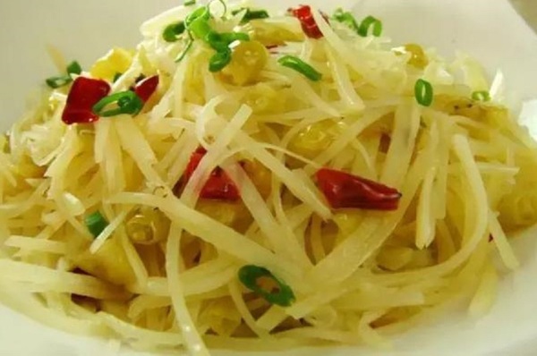 一会儿功夫土豆丝就好了,我都迫不及待要尝一口,味道棒极了!我把妈妈的事情扔在脑后,便狼吞虎咽地吃了起来。一旁的妈妈说:"慢点,慢点,没人跟你抢。"