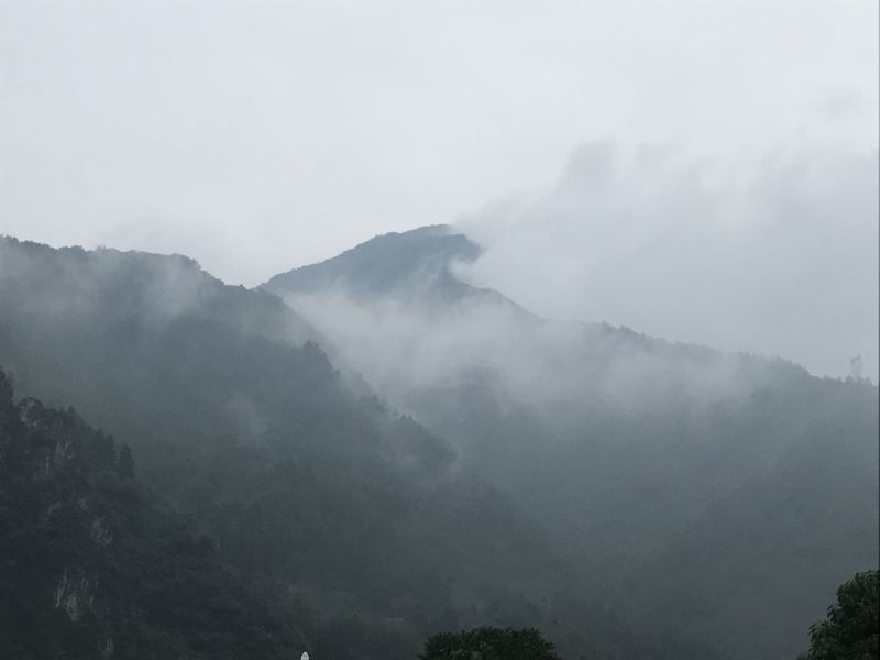 云烟在山头飘摇,雾浓时像鲸鱼、山羊,雾淡时如薄纱、青丝。他们在山间游动,在山间奔跑,让人不禁感慨,这雾的变化万千。